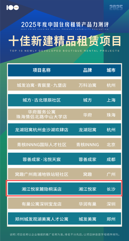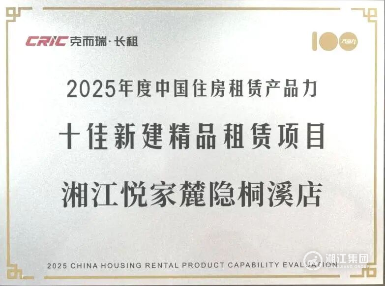 日,全国住房租赁行业系列盛会相继落幕。湘江集团湘江商管公司旗下湘江悦家品牌凭借深厚的行业积淀与卓越的专业运营能力斩获多项全国性大奖,其中公司获评“2025年全国长租公寓指数参编企业TOP20”,麓隐桐溪店荣获“2025年度全国十佳新建精品租赁项目”“2025年中国住房租赁产品力TOP100项目”两项殊荣。这份亮眼的成绩单,既是行业对其专业实力的高度认可,更彰显了品牌以品质房源赋能青年安居的初心。