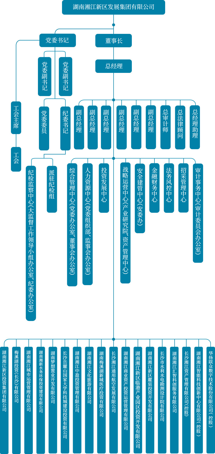 按照长沙市国资国企改革的统一部署,湖南湘江新区发展集团于2016年6月挂牌成立,是涵盖片区开发、城市运营、金融服务、产业投资的市属投资类国有企业,是湖南湘江新区基础设施建设、片区开发、现代产业体系构建、生态环境开发和治理、两型社会建设的重要载体。公司注册资本增至500亿元人民币,现有10个中心,14家全资一级子公司,2家控股一级子公司,控股1家上市公司。当前,湘江集团正围绕“挺进中国企业500强、湖南企业20强”目标,不断做优做强“四大板块”,加速实施“五年倍增”计划,提出“2232”发展战略目标,力争资30