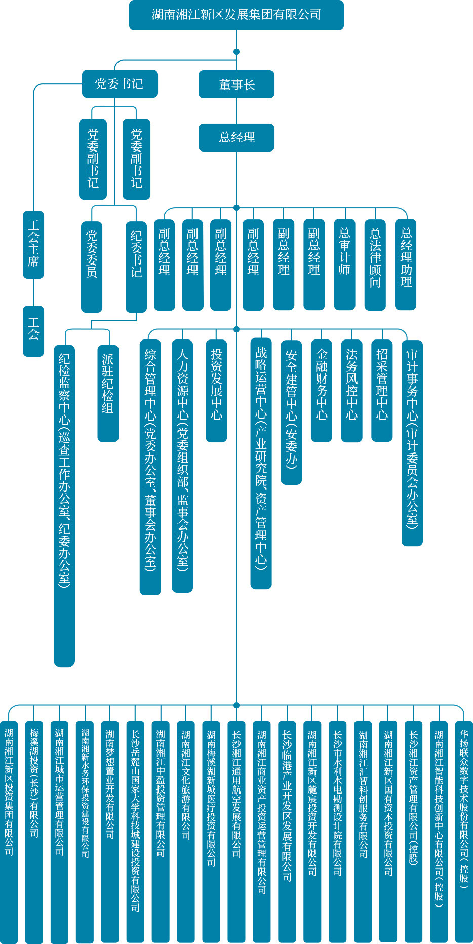 按照长沙市国资国企改革的统一部署,湖南湘江新区发展集团于2016年6月挂牌成立,是涵盖片区开发、城市运营、金融服务、产业投资的市属投资类国有企业,是湖南湘江新区基础设施建设、片区开发、现代产业体系构建、生态环境开发和治理、两型社会建设的重要载体。公司注册资本增至500亿元人民币,现有10个中心,16家全资一级子公司,2家控股一级子公司,控股1家上市公司。当前,湘江集团正围绕“挺进中国企业500强、湖南企业20强”目标,不断做优做强“四大板块”,加速实施“五年倍增”计划,提出“2232”发展战略目标,力争资